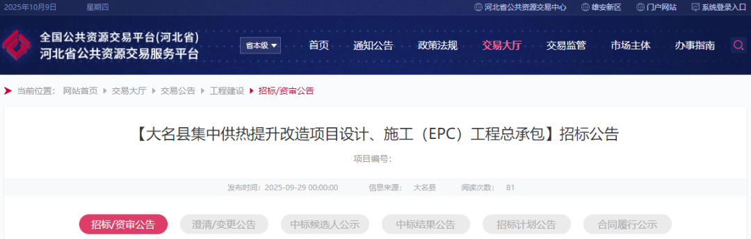 大名縣集中供熱提升改造項(xiàng)目設(shè)計(jì)、施工(EPC)工程總承包招標(biāo)公告