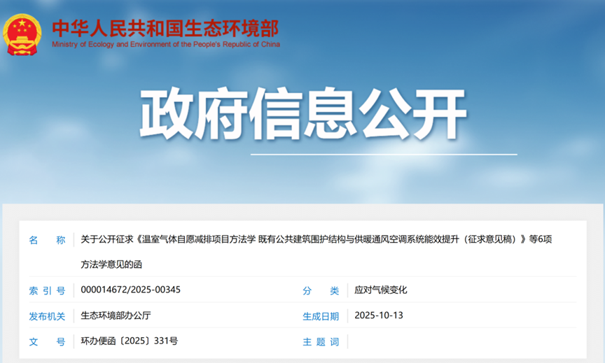 核心提示:為進(jìn)一步完善溫室氣體自愿減排項目方法學(xué)體系,生態(tài)環(huán)境部現(xiàn)公開征求意見。